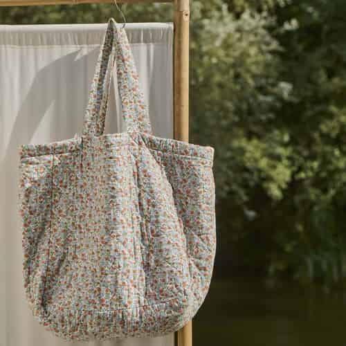 Ib Laursen Väska - Quiltad - Ljusblå och rostfärgade blommor