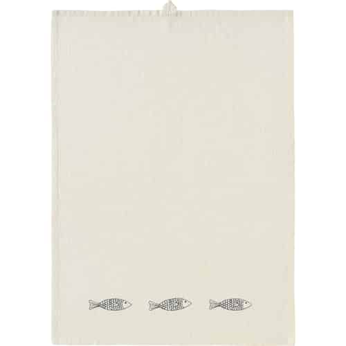 Ib Laursen Kökshandduk Marlin Natur - 3 Tryckt Blå Fisk