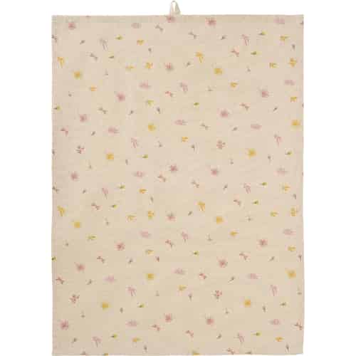 Ib Laursen Kökshandduk "Ofelia" - Natur med ljusrosa och gula blommor och trollsländor